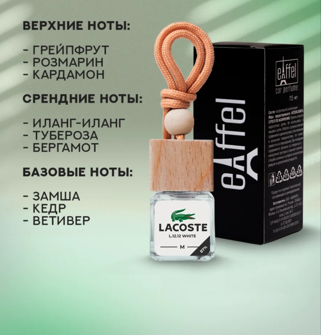 ლაკოსტა პარფიუმერიული მანქანის არუმატიზატორი ,7.5მგ შეფუთვაში , ეფელის წარმოების ფრანგული,,, გახსნიდან 4კვირა აორთქლების არიალი..